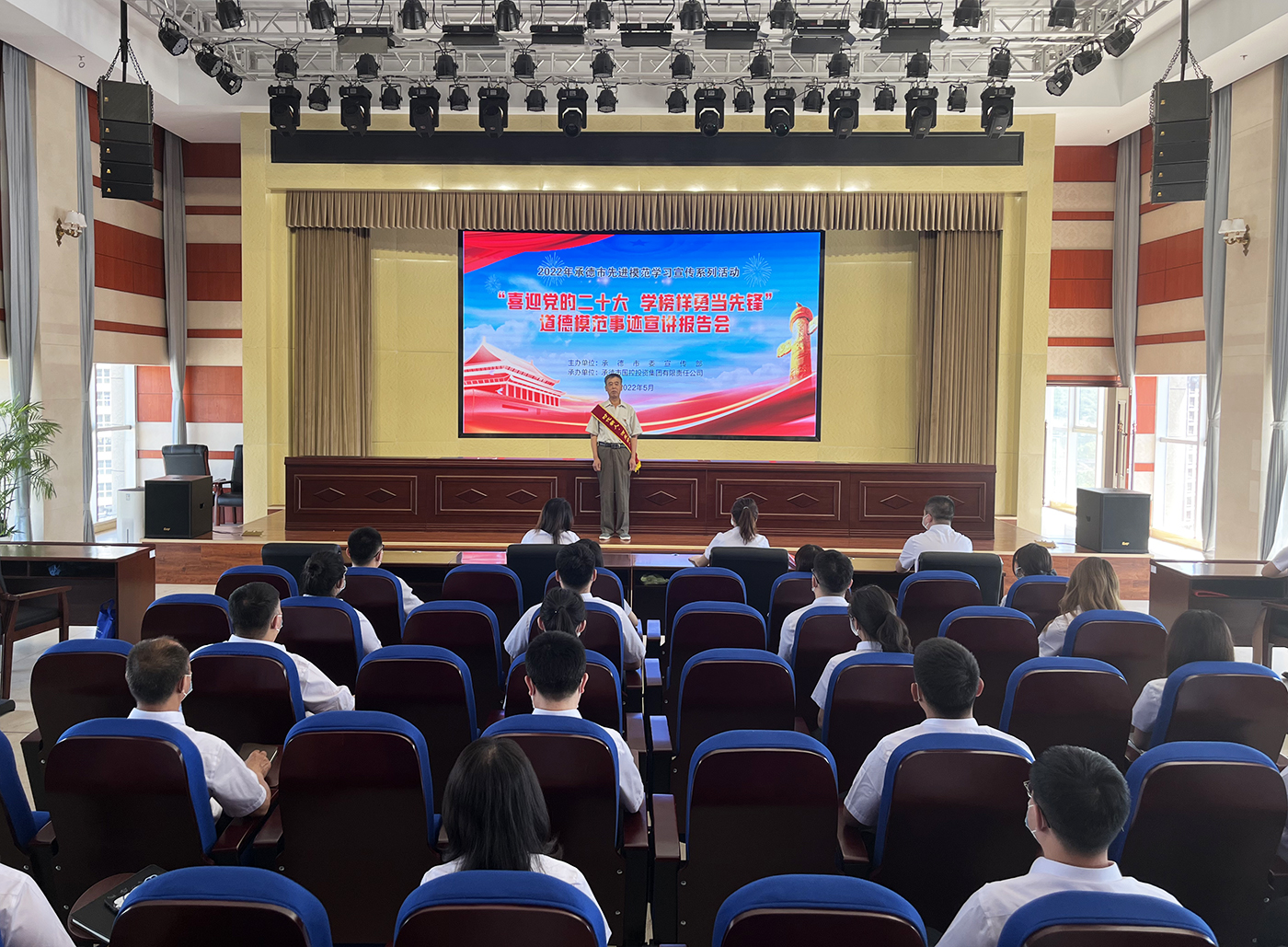 為進一步發揮“新時代承德榜樣” “道德模范”先進典型的示范引領作用,大力弘揚塞罕壩精神,全面助力“四個再建功立業”,匯聚起公司高質量發展的精神動力,喜迎黨的二十大勝利召開,5月27日,由市委宣傳部主辦的“喜迎黨的二十大? 學榜樣爭當先鋒”道德模范事跡宣講報告會在國控集團成功舉行。