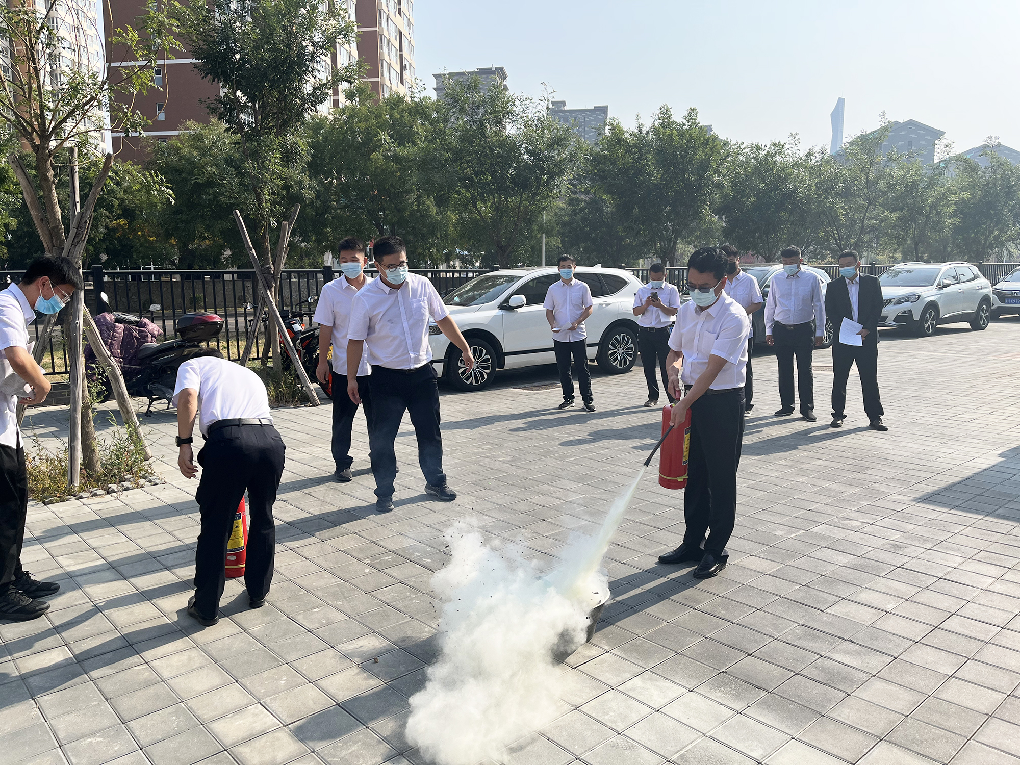 消防逃生演練結(jié)束后,為進(jìn)一步鞏固實(shí)踐效果,演練小組重點(diǎn)講解并示范了滅火器的使用方案,現(xiàn)場員工逐一上場進(jìn)行了實(shí)際操作。